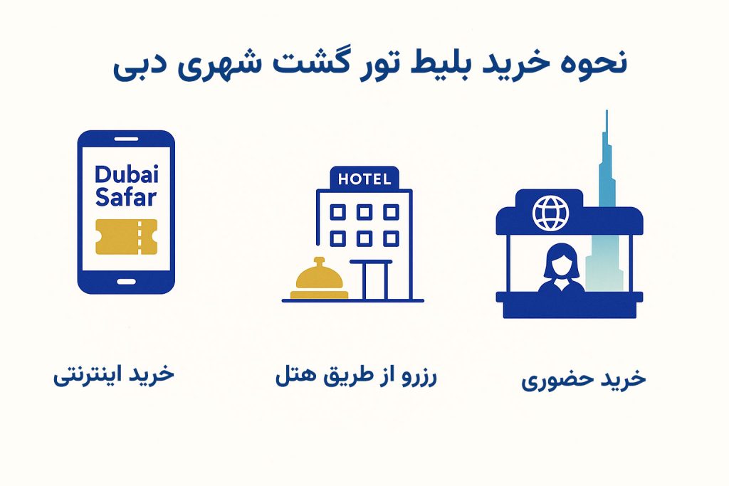 برای خرید بلیط تور گشت شهری دبی چند روش وجود دارد: