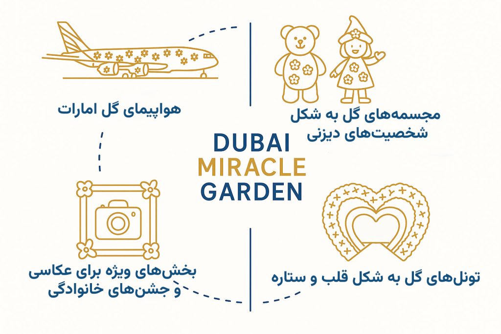 باغ گل دبی یا میراکل گاردن دبی یکی از شگفتانگیزترین جاذبههای دیدنی دبی است که با طراحی خلاقانه، میلیونها گل رنگارنگ و امکانات رفاهی متنوع، تجربهای بهیادماندنی را برای بازدیدکنندگان فراهم میکند.