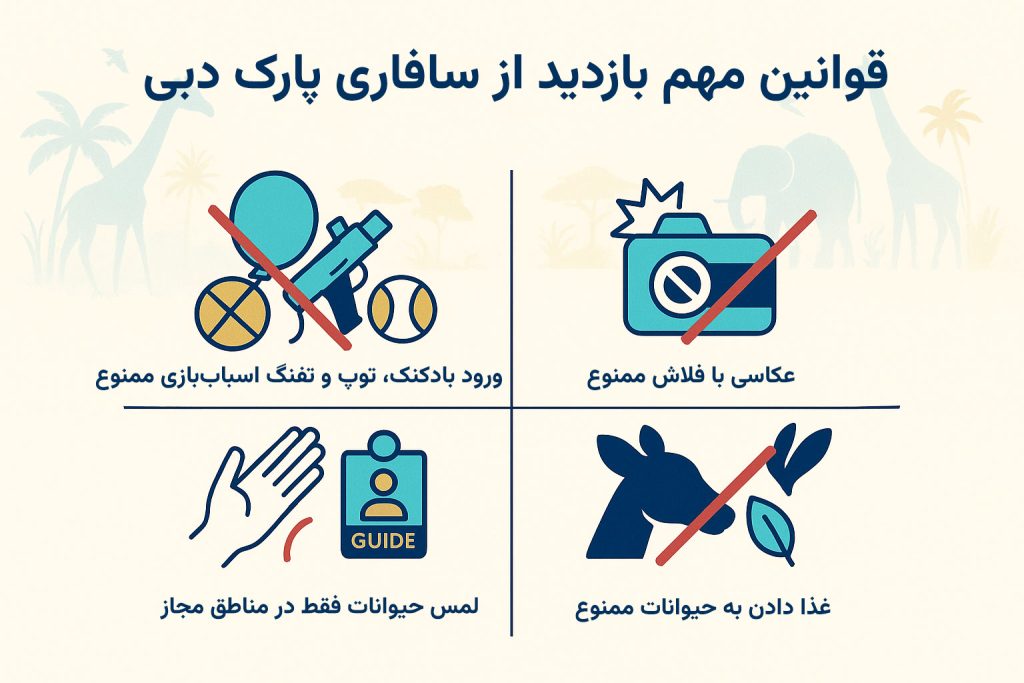 برای حفظ امنیت بازدیدکنندگان و حیوانات، رعایت قوانین زیر الزامی است: