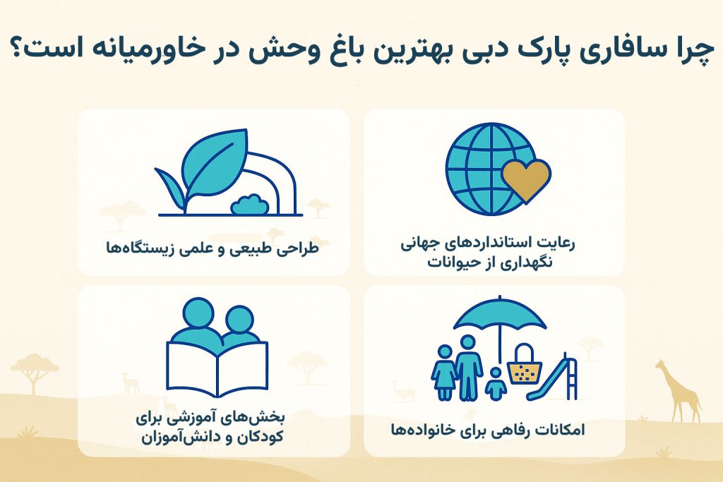 - بازدید از این پارک سافاری دبی، تجربهای خانوادگی، آموزشی و سرگرمکننده است.