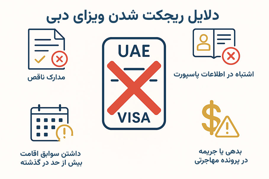 در صورتی که مدارک ناقص باشند یا اطلاعات با پاسپورت تطابق نداشته باشد، احتمال ریجکت شدن ویزای دبی افزایش مییابد.
