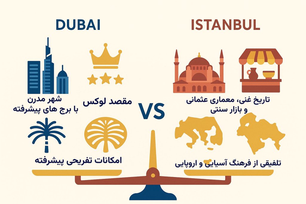 دبی یا استانبول؟ مقایسه سفر و انتخاب بهترین مقصد برای تعطیلات