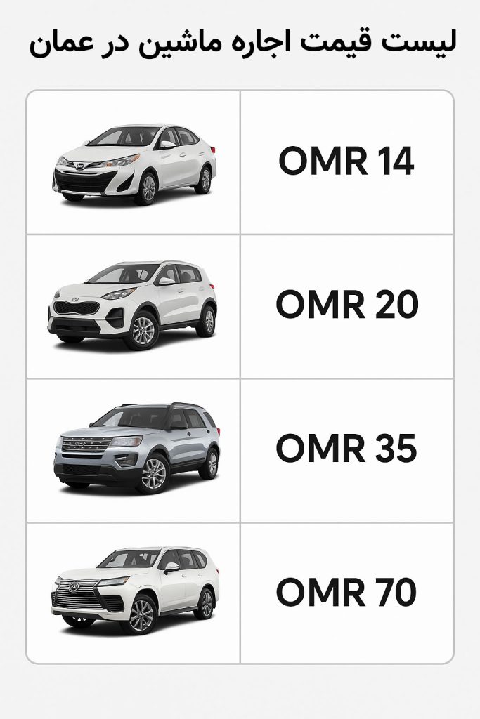 هزینهها و قیمت اجاره خودرو در عمان چقدر است؟
